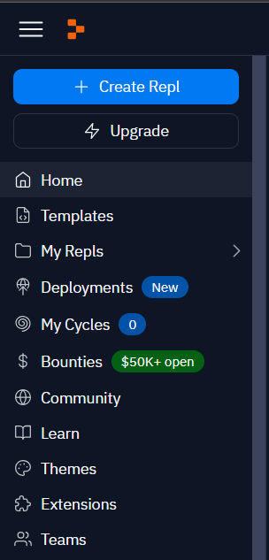 Then, in your dashboard, go to the left-hand sidebar and click on "Create Repl."