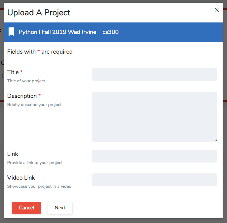 Enter the title, description, and link/file to your project.